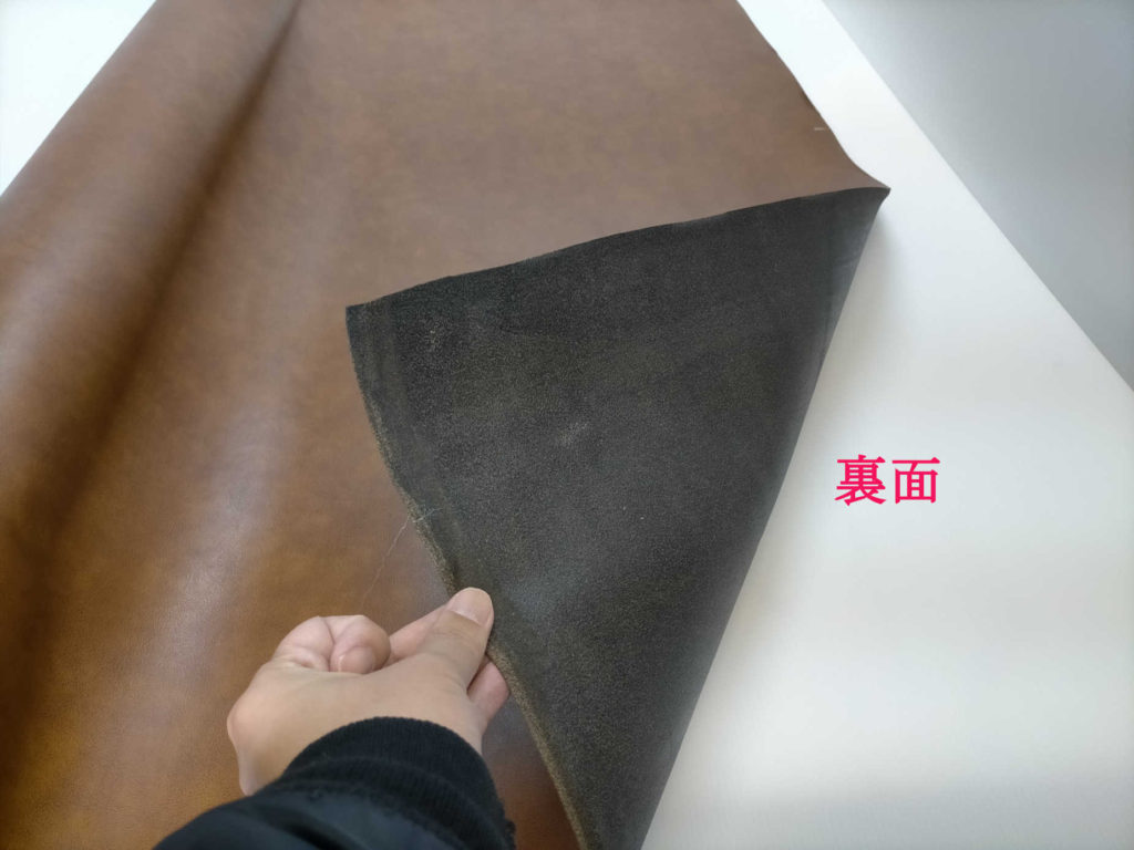 人工皮革素材は、裏基布が織物生地を使用している通常の合成皮革に比べて、強度や見た感じ~風合いまで本革製を思わせる素材です。