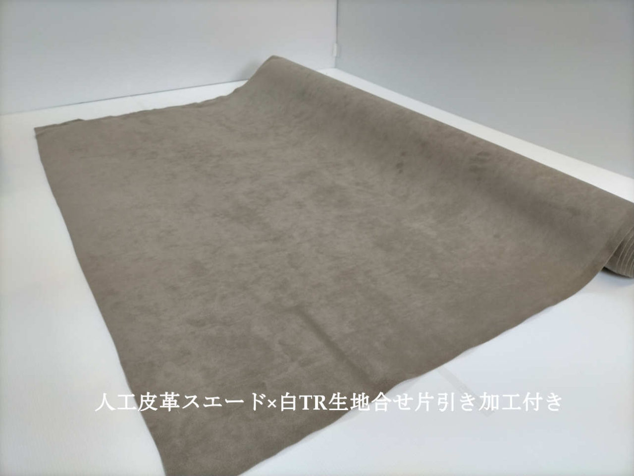当商品は、表の人工皮革スエードタイプと裏面の白TR生地を合せ加工しています。