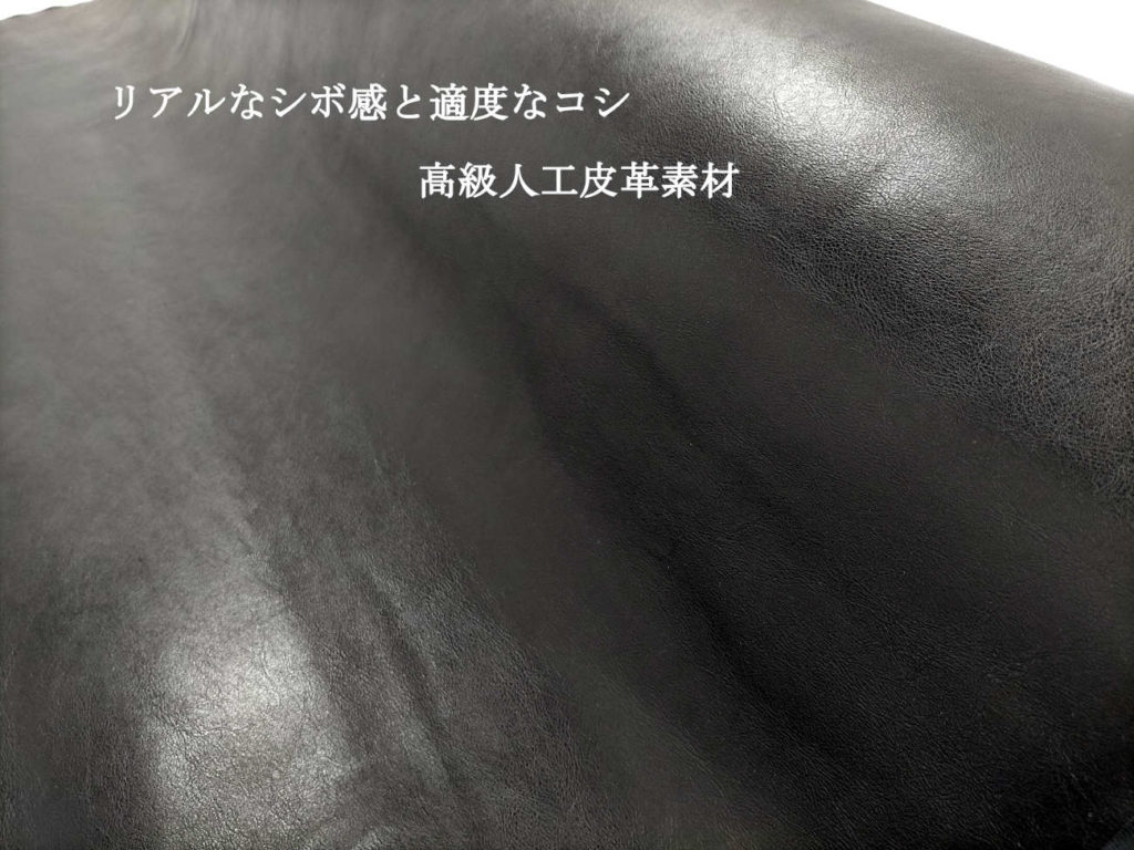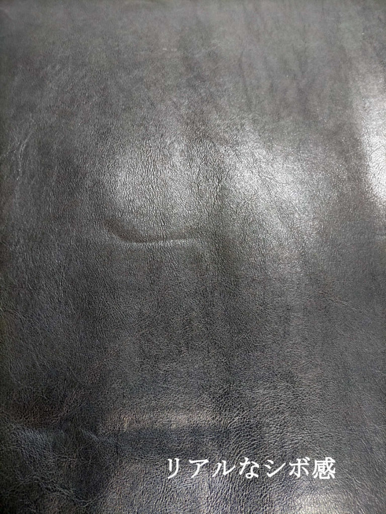 風合いは、牛革のように少しコシが強い感じです。