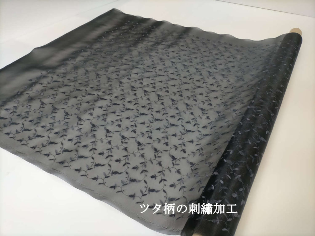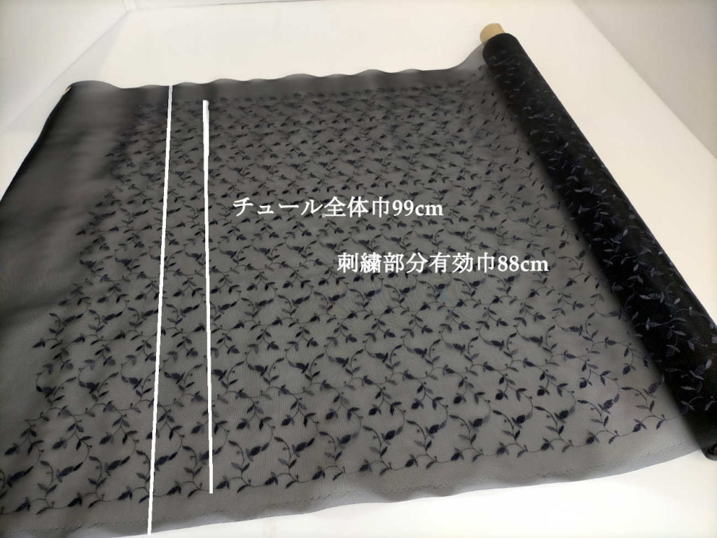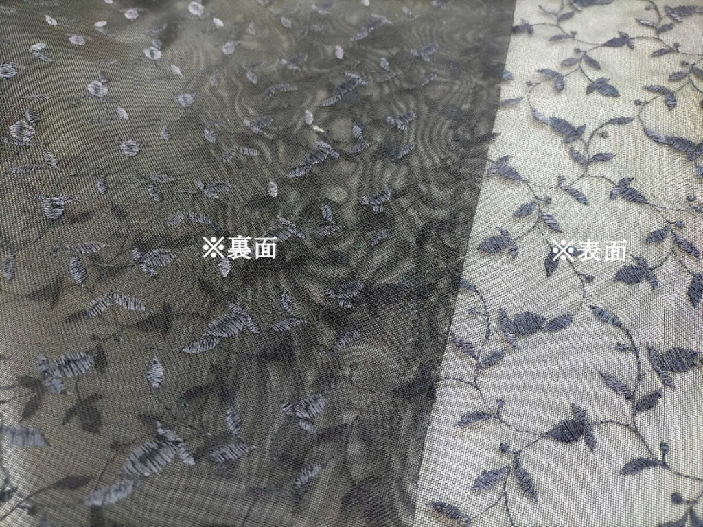 当商品は、資材向けのチュール素材の上に刺繍を施した高級素材です。