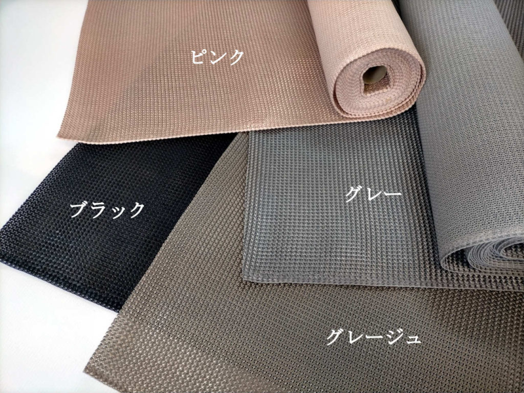 サテン生地のような、やや光沢のある見た目のメッシュ素材です。