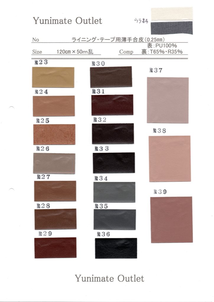 カバンなどの裏材やテープなどに使用される薄手の合成皮革です。
